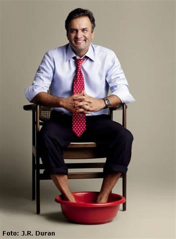Simpático, prosador, ele apareceu no estúdio de JR Duran, na Vila Madalena, em São Paulo, para fazer as fotos. Topou a ideia do fotógrafo de posar no papel de “candidato”: com uma criança no colo; dando uma entrevista coletiva; colocando os pés numa salmoura após uma caminhada de campanha. Fez piadas sobre José Serra, seu arquiinimigo, mandou um abraço para a avó da editora de moda, que também era de Minas. Enfim: um político.